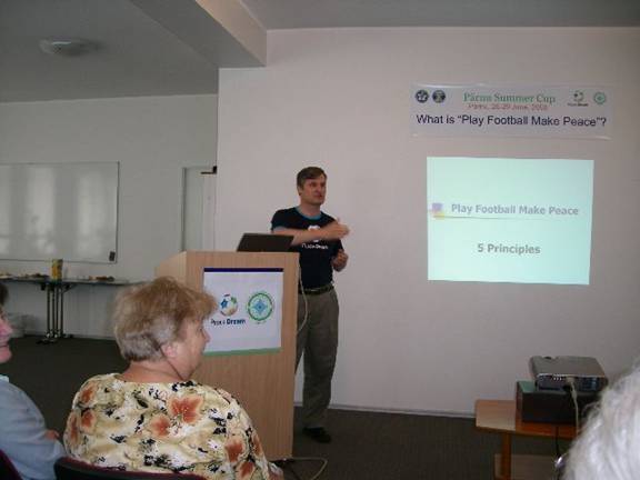 PFMP and FC Vaprus launched the Parnu Summer Cup - Play Football Make Peace in 2007, a partnership to explore these ideas and to develop a model which could be incubated in a small country, but which, if successful, could then be shared with the rest of Europe. The Parnu Summer Cup 2008 has now developed the model further.